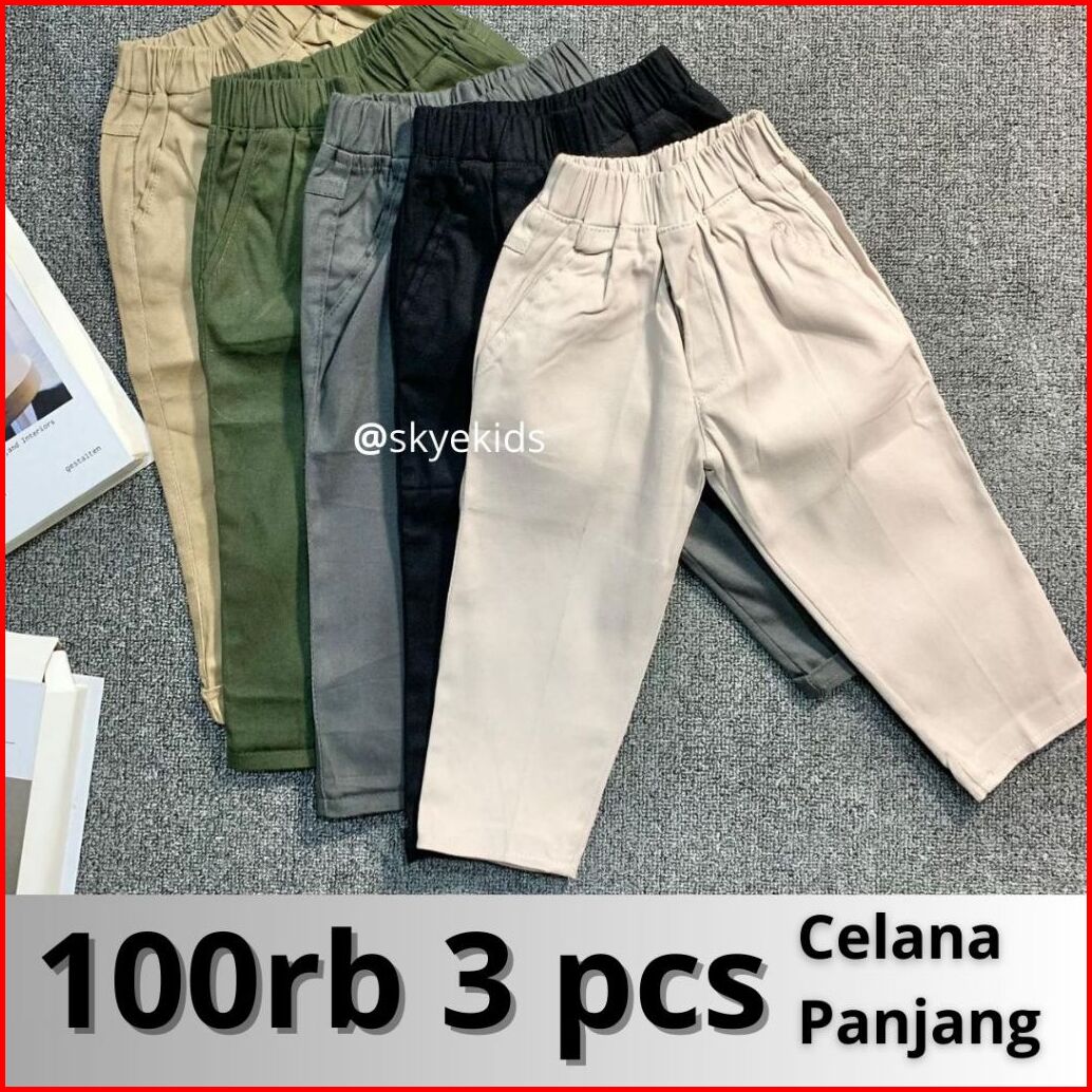 Skye Kids - 100k 3pcs Celana Chino Panjang Anak Laki Laki Umur 1 - 12 Tahun Katun