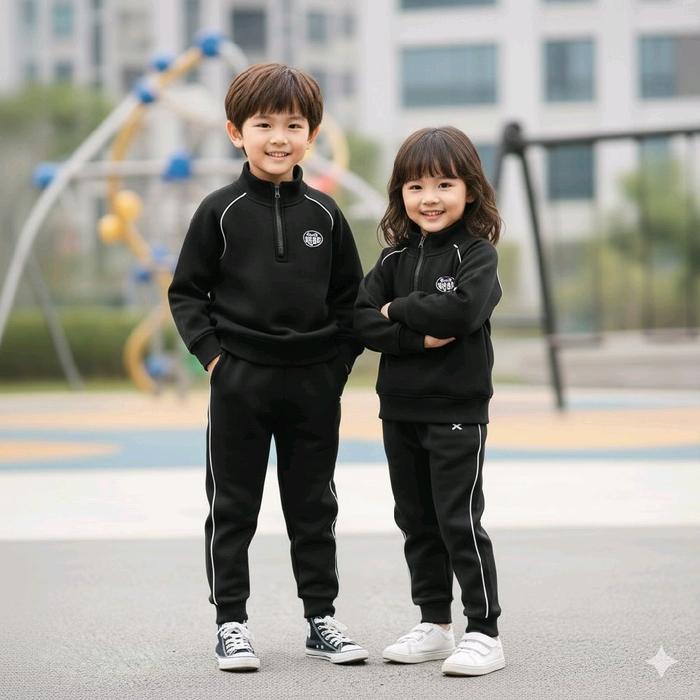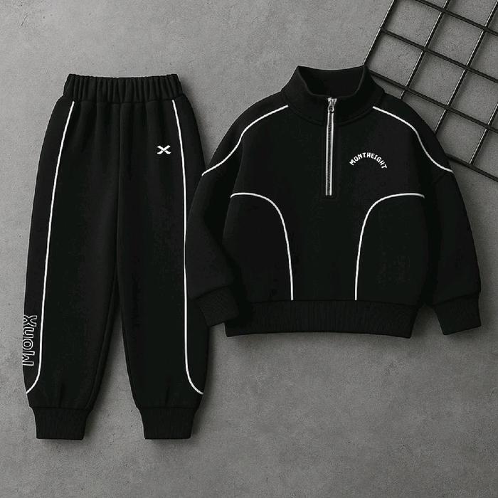 Satu Set Tracktop Ula Kids Sweater + Jogger 1 - 12 Tahun Bahan Katun Flecee Tebal Hangat & Lembut Cocok Untuk Musim Ding