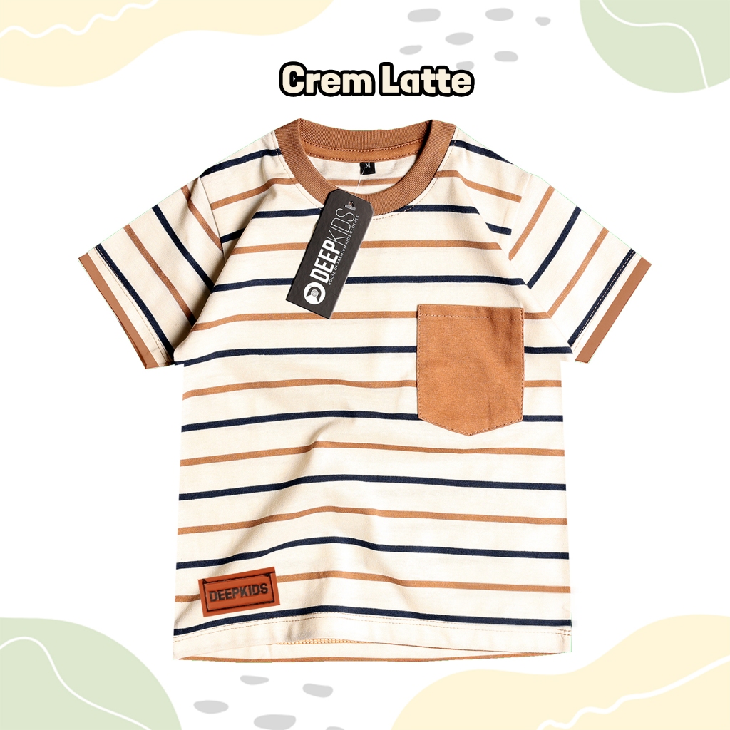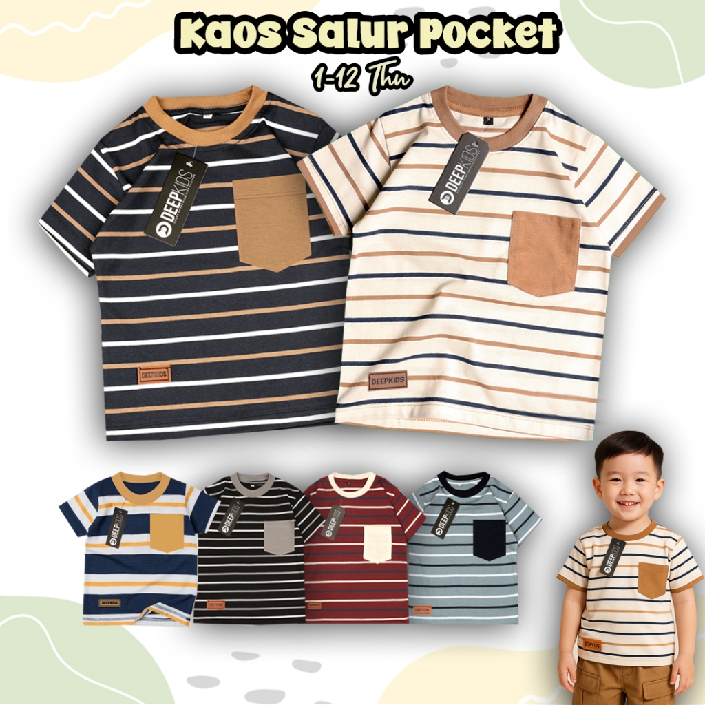 Deepkids Baju Kaos Anak Strip Salur Saku Bahan Cotton Cvc 24S Usia 1 2 3 4 5 6 7 8 9 10 11 12 Tahun | Kaos Anak Laki Lak