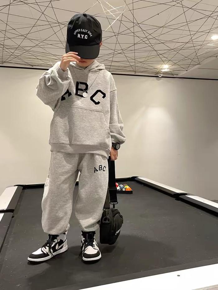 Setelan Anak Laki Laki Hoodie+Celana Panjang 2-8 Tahun Korean Style Setelan Olahraga 3 Warna Hitam/Putih/Abu-Abu Bayi K