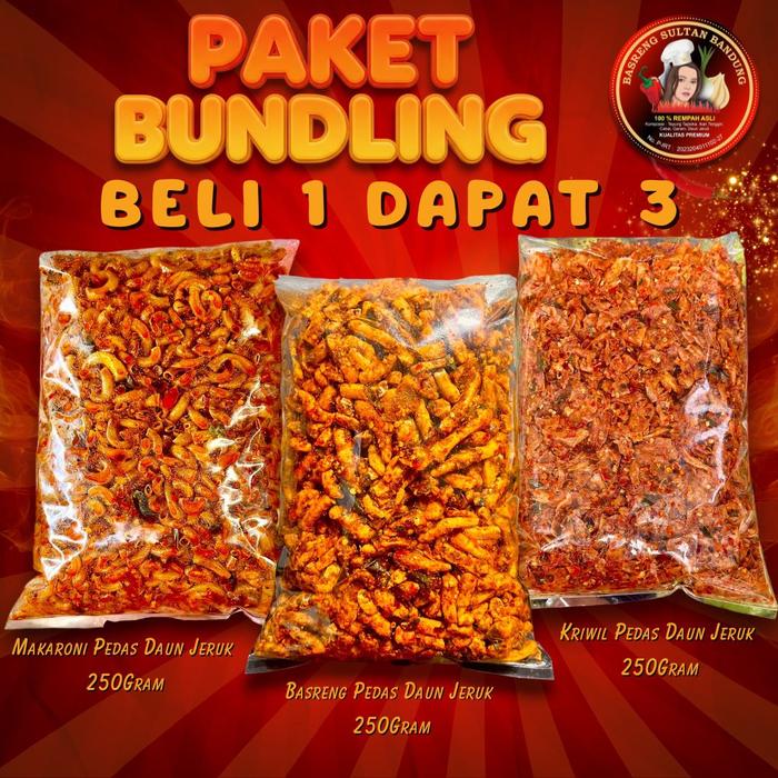 Bundling 3 - Makaroni 250Gr, Basreng Pedas Dj 250Gr, Keripik Singkong Kriwil 250 Gr