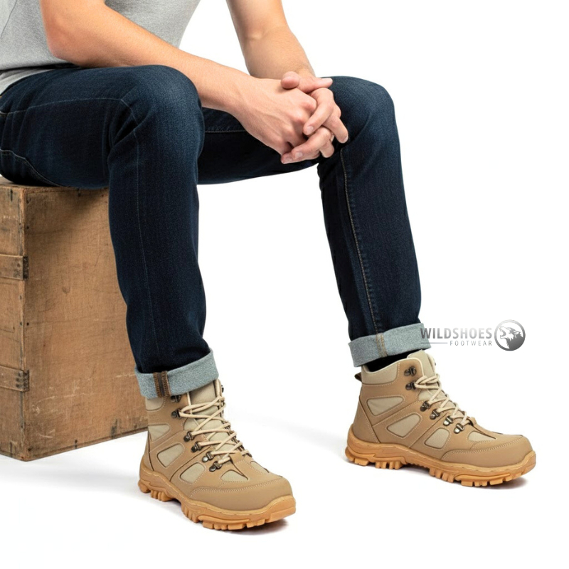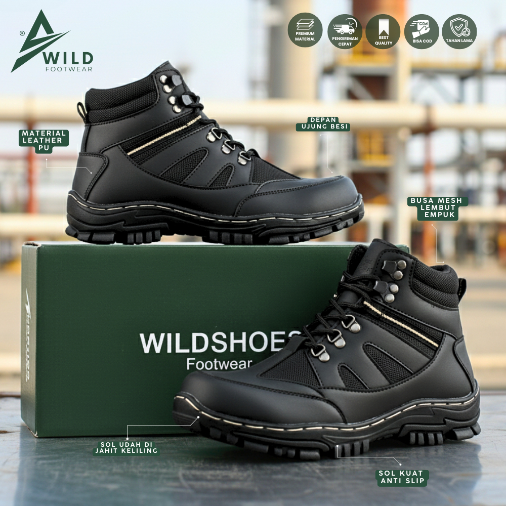 Sepatu Safety Pria Boots Ujung Besi - Sepatu Pria Boots Safety Kerja Lapangan Outdoor Tracking High Quality - Wildshoes