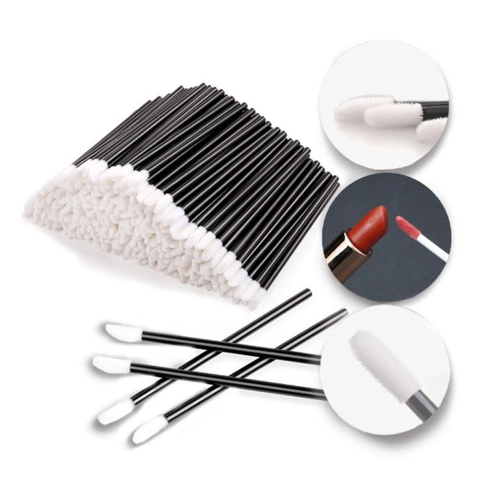 50Pcs Brush Applicator Aplikator Kuas Lipstik Kuas Bibir Lembut Portabel 0017 - Black