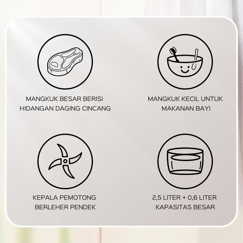 HAN RIVER Blender 2.5L+0.6L Dual Cup 3-IN-1 Multifungsi Chopper Daging dan Bumbu Mudah Dibersihkan