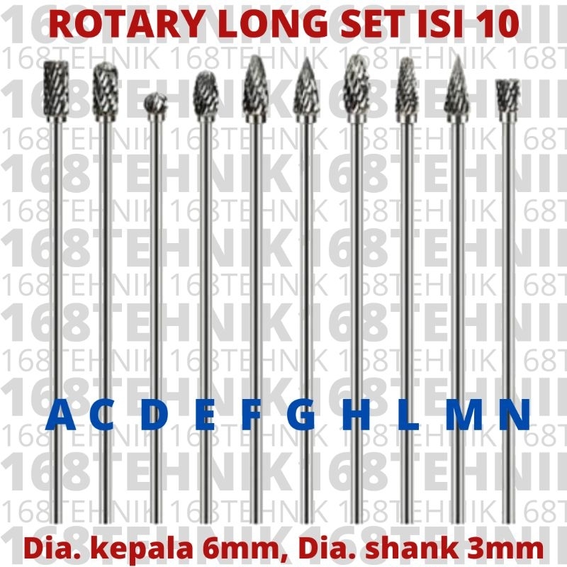 Rotary Long Set Isi 10 / Mata Tuner Panjang Dua Arah Set Isi 10 / Rotary Burr
