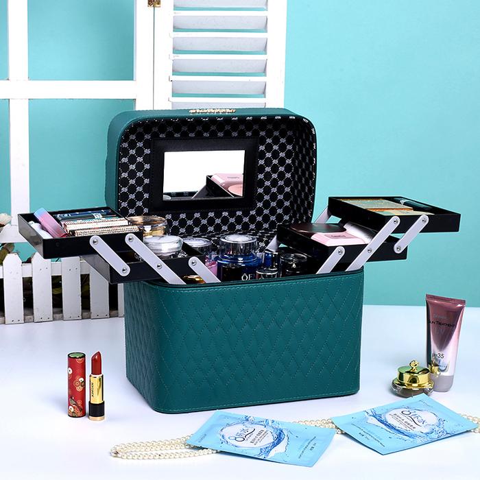 Koper Kosmetik Jumbo 91106 – Beauty Case 3 Susun Waterproof Bahan Kulit, Cocok Travel & Mua - Hijau