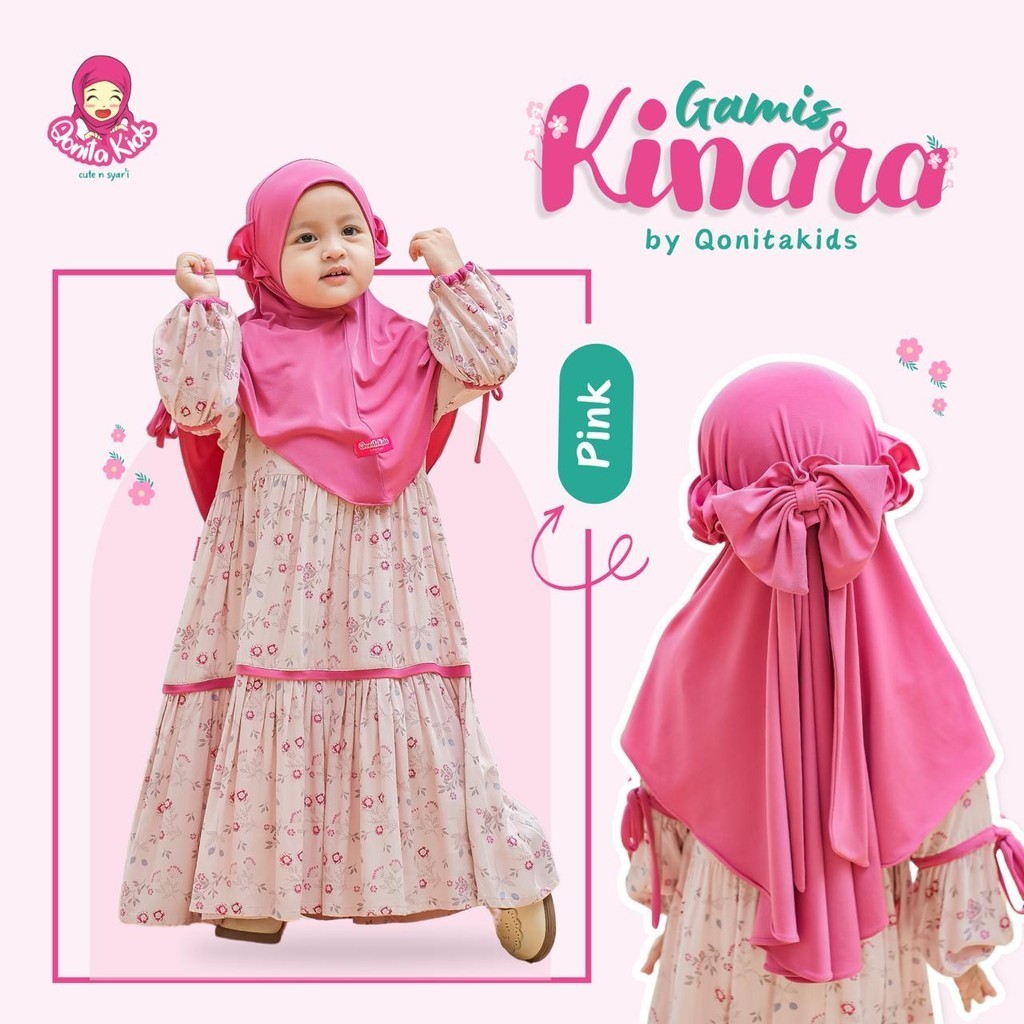 Qonita Kids - Gamis Kinara Set (0 - 10 thn + Satu Set Hijab) Gamis Rayon anak perempuan Baju Muslim Panjang Nyaman Motif Syari