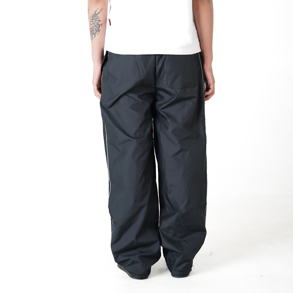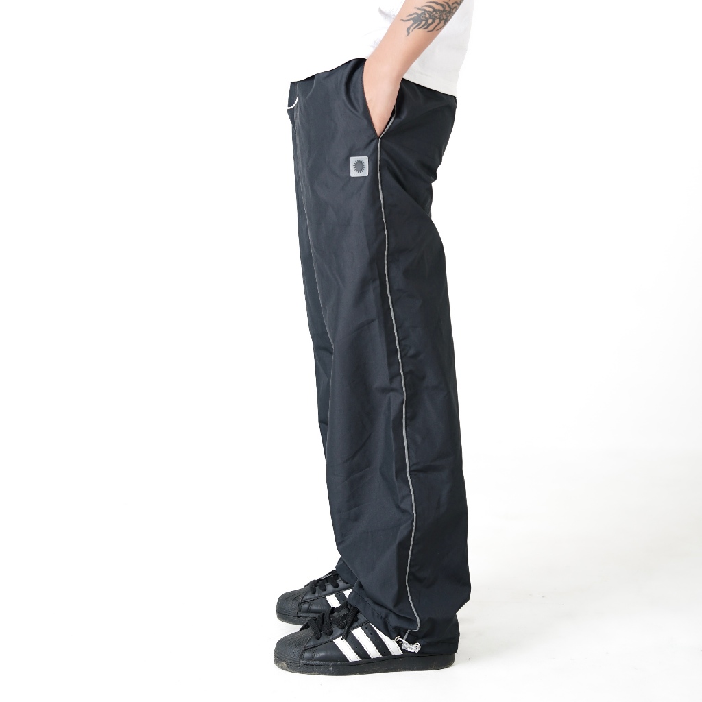 Genuvaly - Trackpants Loose Fit United Series Black Celana Panjang Parasut Taslan Reflektive Rubber Patch