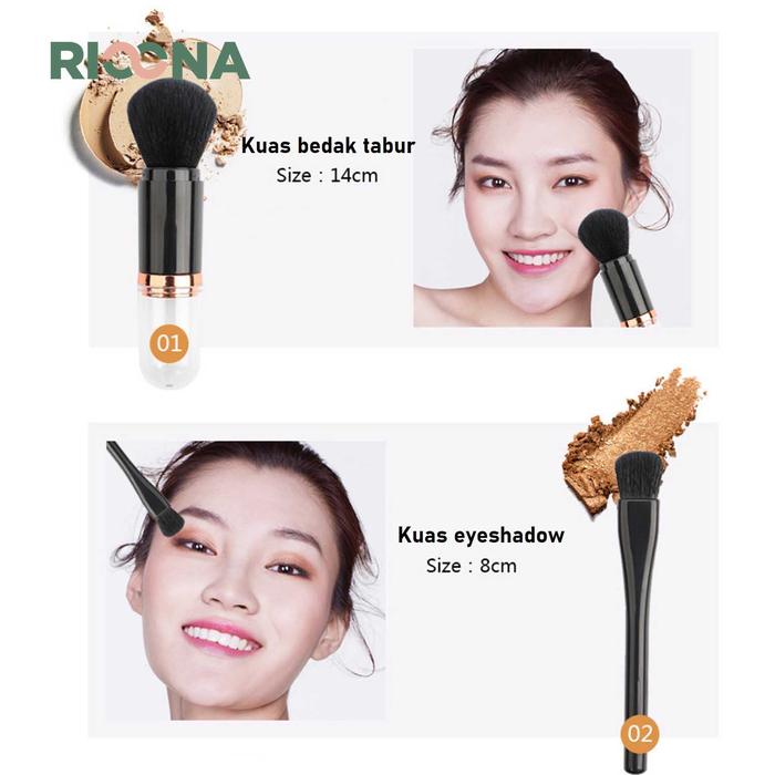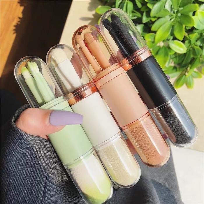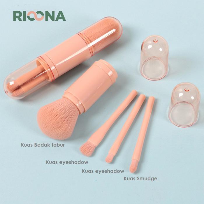 Make Up Brush Set Portable Telecospic 4 Pcs Kuas Make Up Travelling - Hitam