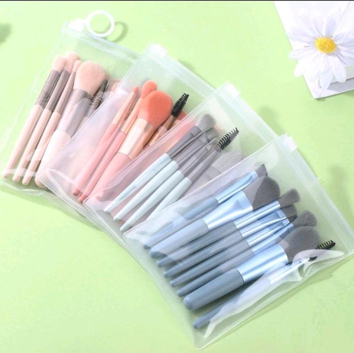 Make Up 8 Pcs + Pouch / Paket Alat Make Up Travel/ Brush Set Promo Penjualan - Biru