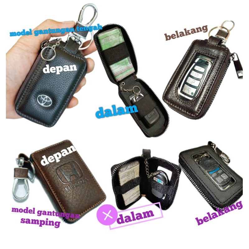 Dompet Kunci Remote Keyless Mobil Kulit Asli Transparan Double Karet Dompet Stnk