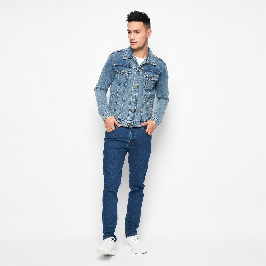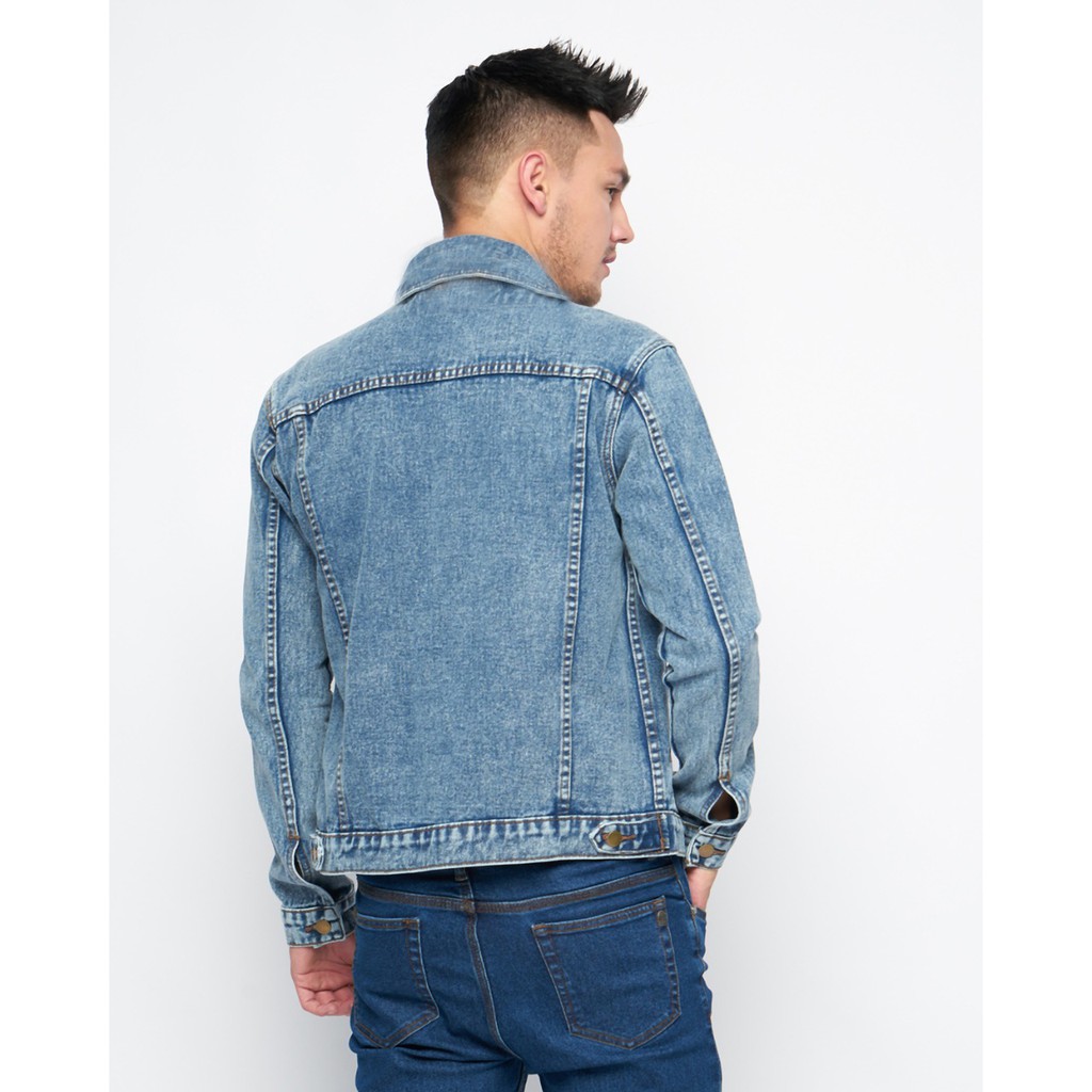 Hillboss Jaket Jeans Pria Regular Fit Washed Blue Benza - Jckt003 Jaket Denim Casual