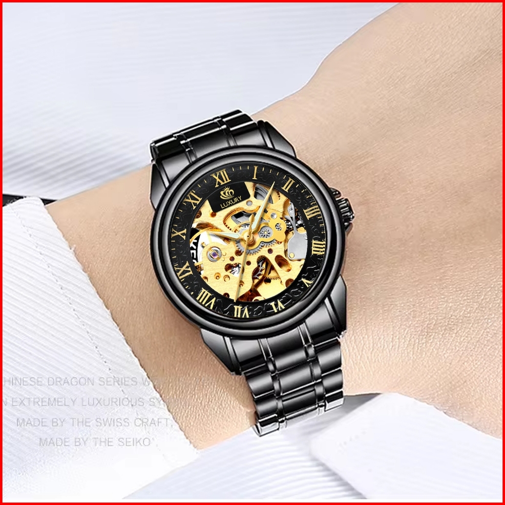 Harga Terbaik Jam Tangan Pria Automatic Luxury Original Tanpa Batrai Tahan Air Bercahaya Dalam Gelap Kaca Transparant St