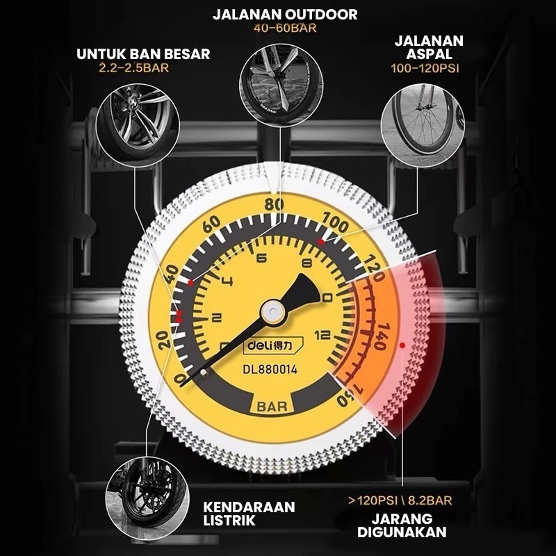 Pompa Angin Ban Sepeda Motor Injak FP4310S Double Silinder 160psi Bola Mobil