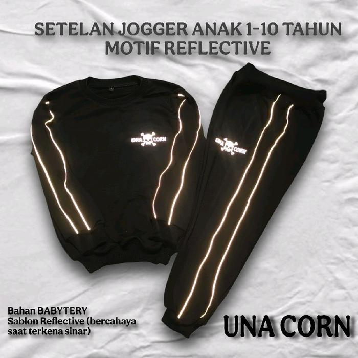 Unacorn Setelan Jogger Anak 1-10 Tahun Motif Garis Reflective Bercahaya - Hitam, S 1-2Thn