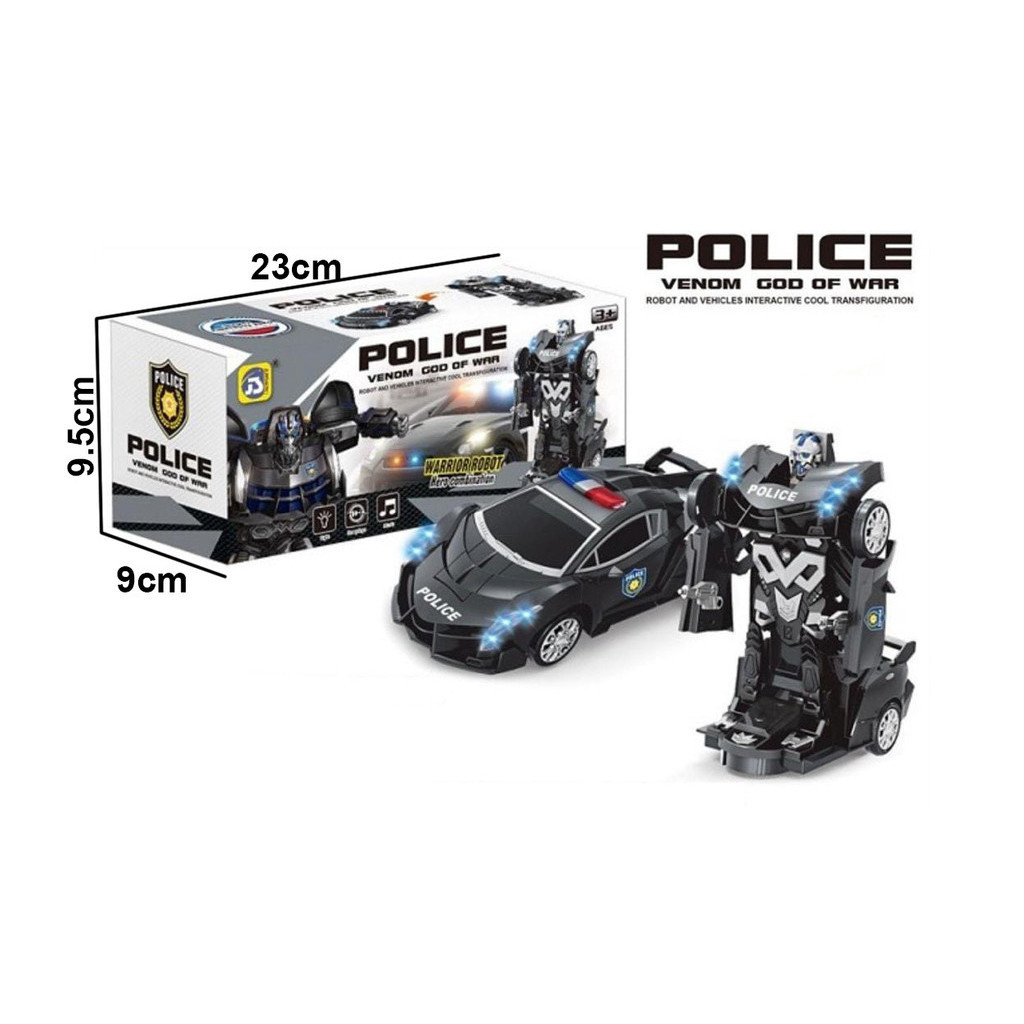 Toy Studio Mainan Anak Mobil Robot Deformation Police Hitam Venom Polisi Keluar Musik & Lampu