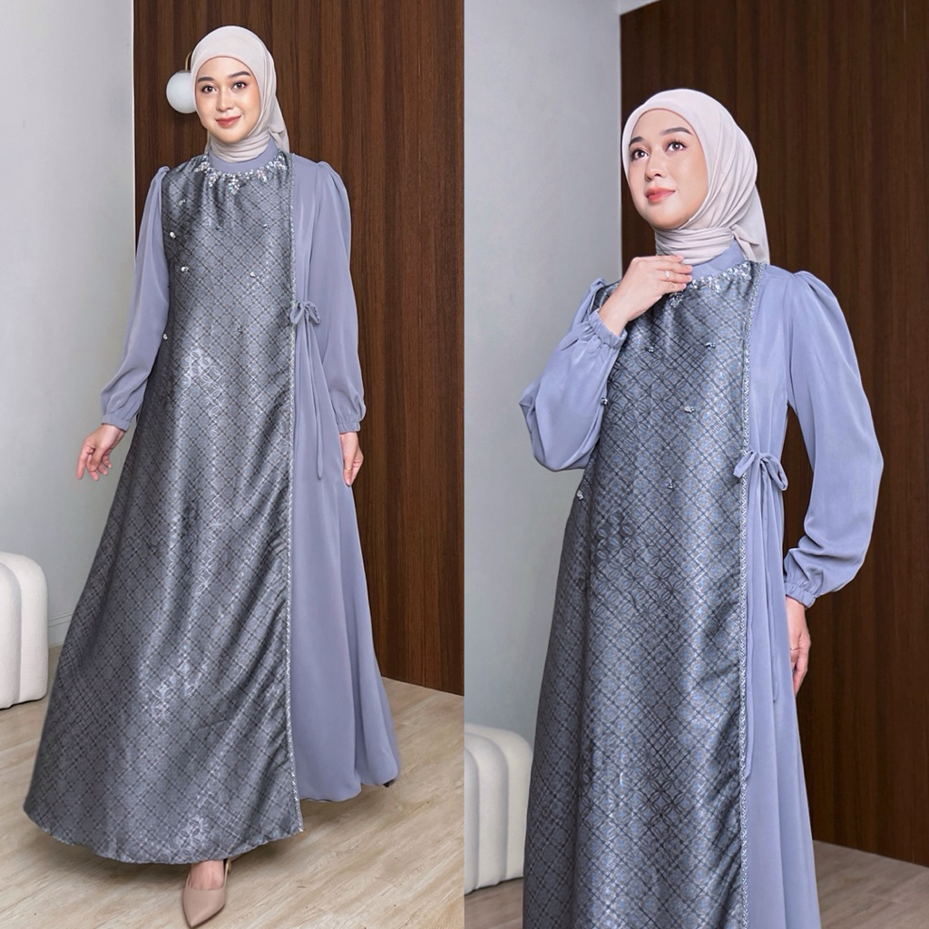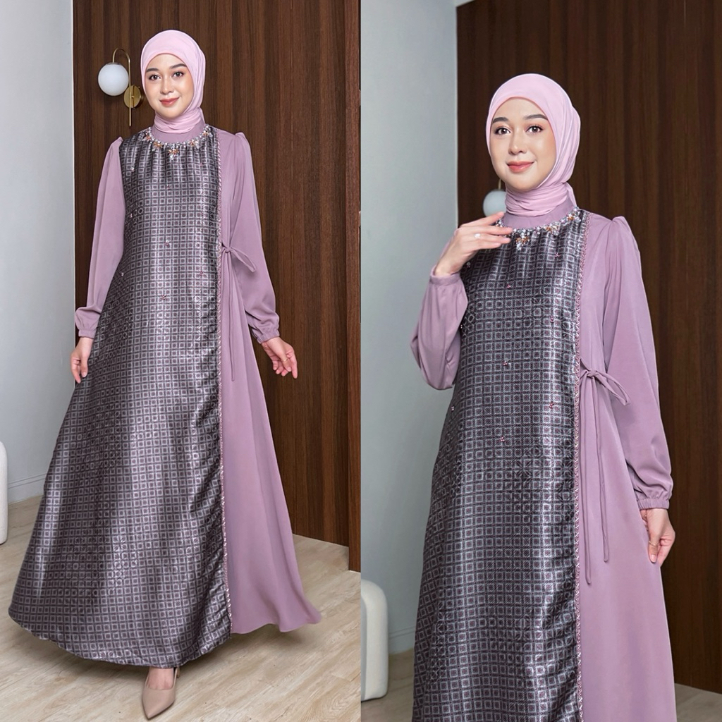 SERUNI DRESS GAMIS WANITA MUSLIMAH REMAJA DEWASA Ibu Ibu Payet Kondangan Motif Kombinasi Polos