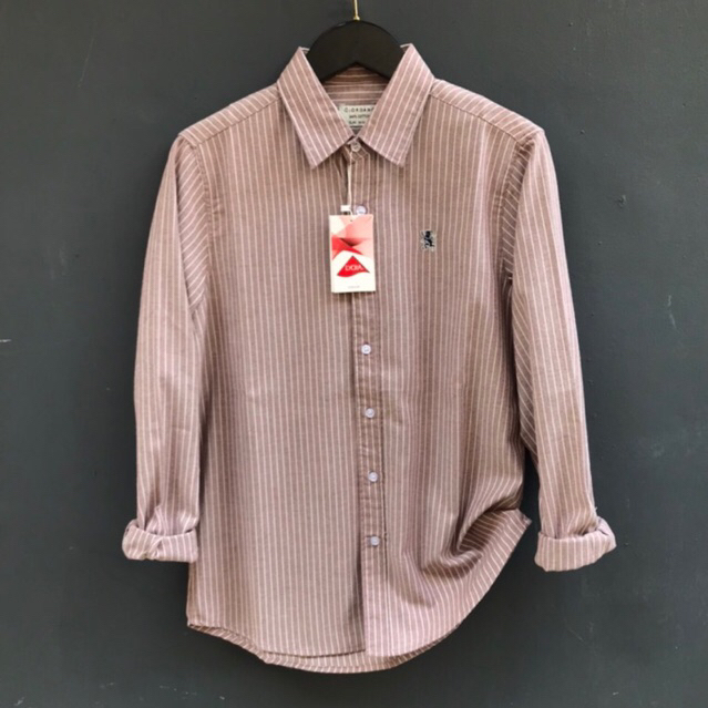 Giordano 3D Kemeja Garis Salur Oxford Kemeja Pria Lengan Panjang Formal
