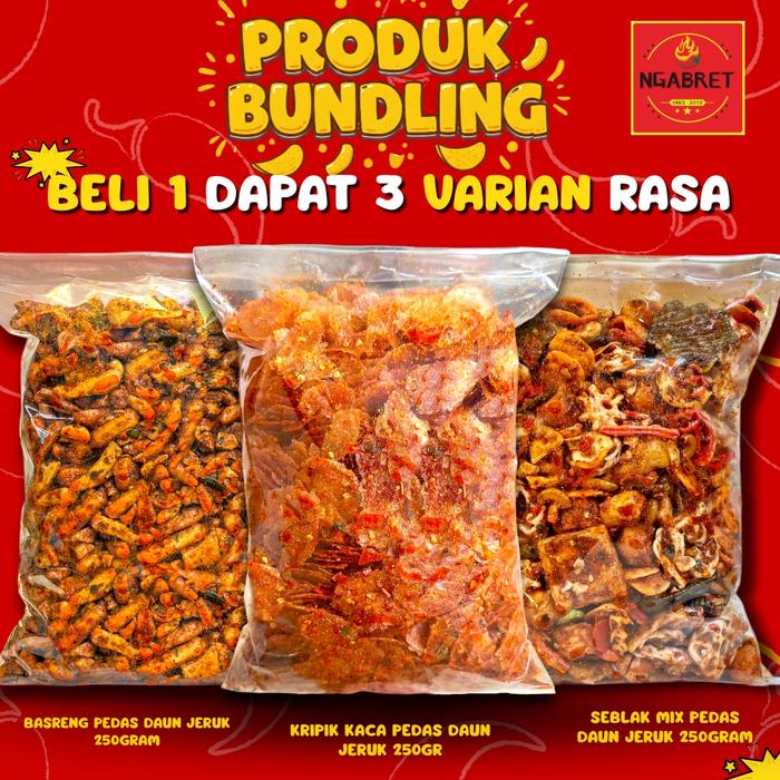 Ngabret Bundling Kripca Keripik Kaca Pedas Daun Jeruk 250Gr Basreng Pedas Daun Jeruk 250Gr Sebring Mix Pedas 250Gr Beli