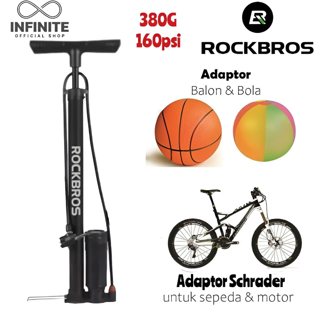 Pompa Angin Sepeda Motor Bola Air Pump Road Bike Mtb ROCKBROS 380G 160 PSI
