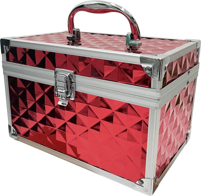 Kotak Kosmetik Mua 1668-2 – Beauty Case Elegan Bahan Metal & Abs, Kunci Aman – Ukuran 23X15X15Cm | Ttshopindo - Merah Wa