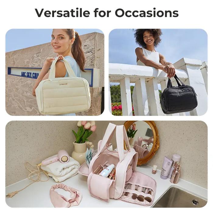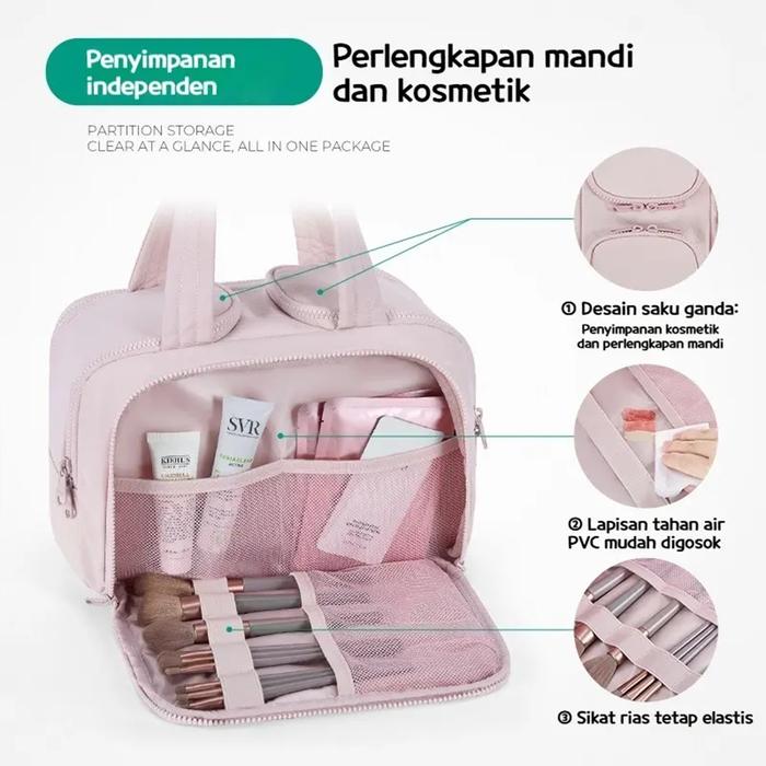 Tantomi Tas Kosmetik Ringan Besar 6L Dengan 4 Kompartemen Tas Perjalanan Wanita Tas Toiletry Mudah Dibuka Untuk Aksesori