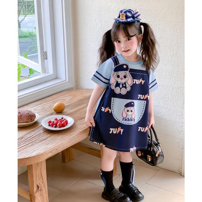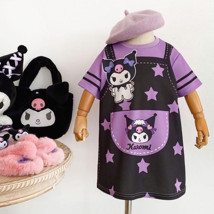 Princess Kesli 1-9 Tahun Gaun T-Skirt Tiga Warna Kartun Dopamin Rok Kelinci Judy Ber Stroberi Kuromi Dress Putri
