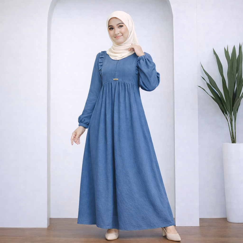 Gamis Wanita Ruffle Simple Lebaran Elegan