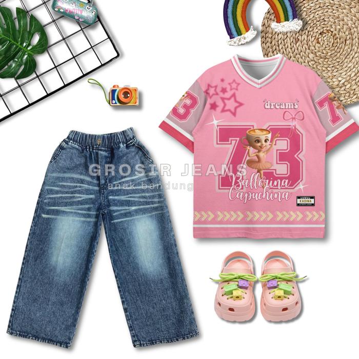 Setelan Anak 3In1 / Kaos Jersey Dryfit / Celana Whisker Skena / Sandal Baim Anak Usia 1-12Thn - 62-Snow C.Hitam, 2-3Th