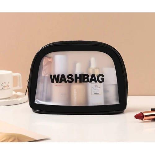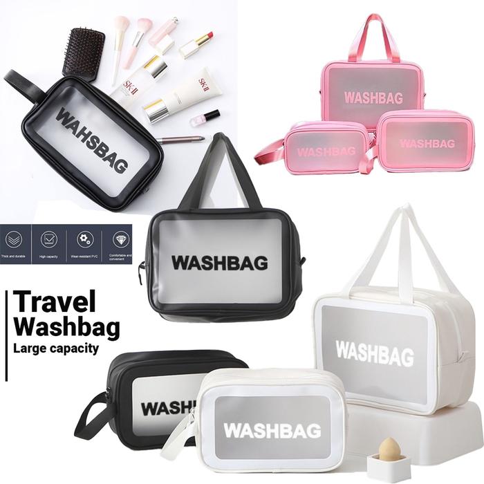 Tas Kosmetik Washbag - Pouch Makeup Travel - Transparan Waterproof - Hitam Besar