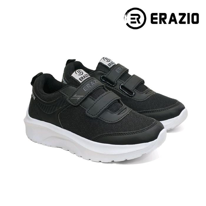 Erazio Manaff - Sepatu Sekolah Perekat Velcro Strap 2 Black White Sepatu Anak Laki Laki Dan Perempuan Ringan Size 30-40