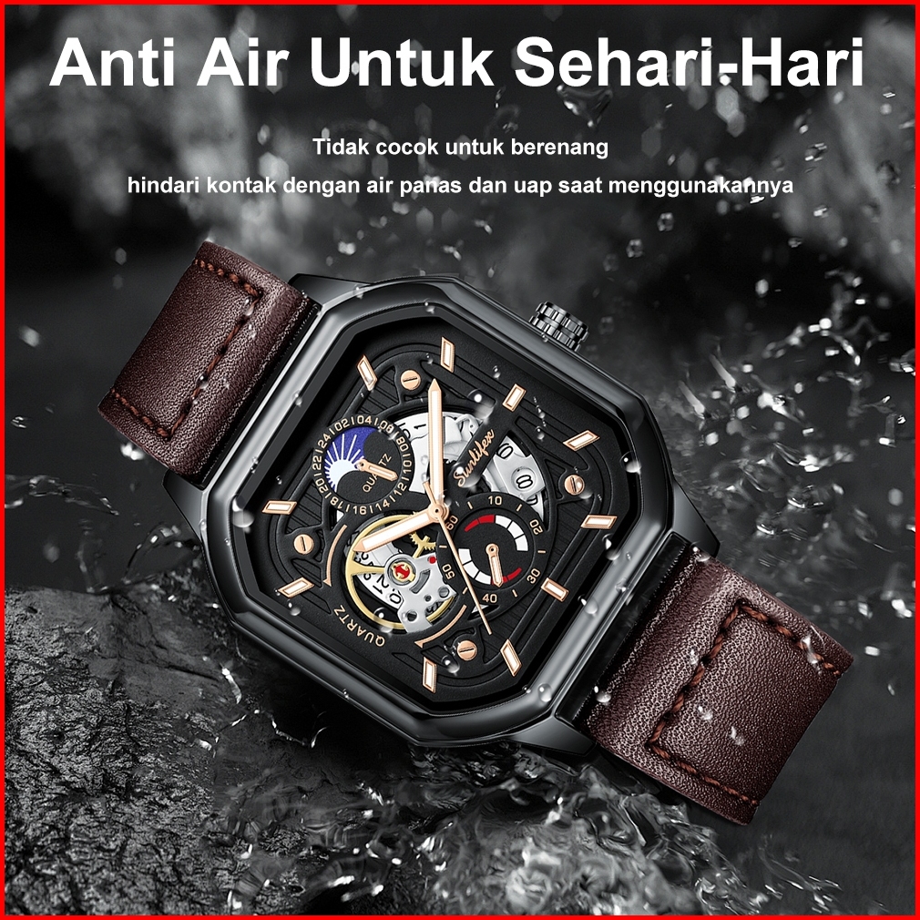 Sunlifex 9110 Jam Tangan Pria Anti Air Tali Kulit Kalender Keren Bisnis Kasual Cowok Original Watch