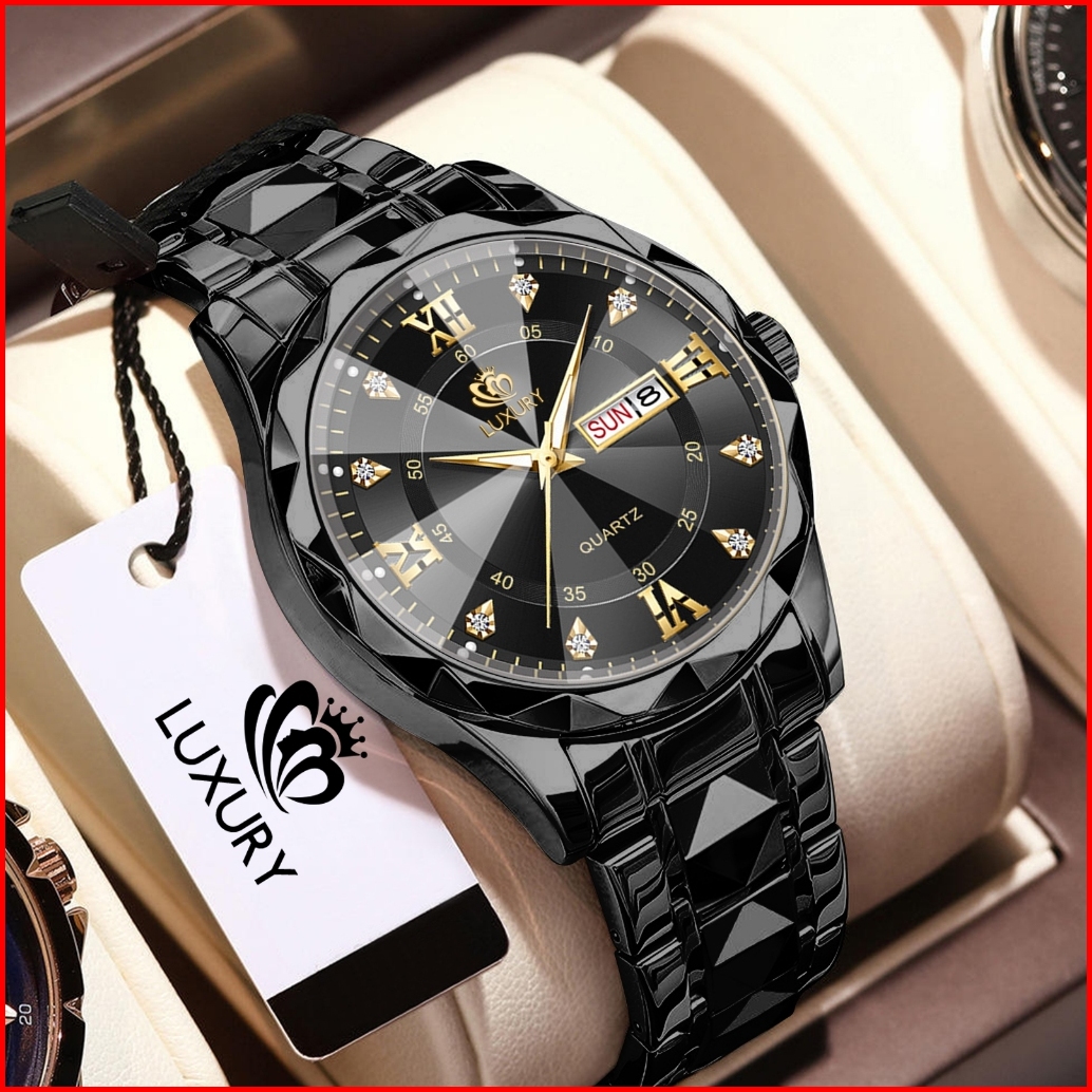 Jam Tangan Pria Luxury Anti Air Original Anti Karat Bercahaya Kalender Quartz Watch Men