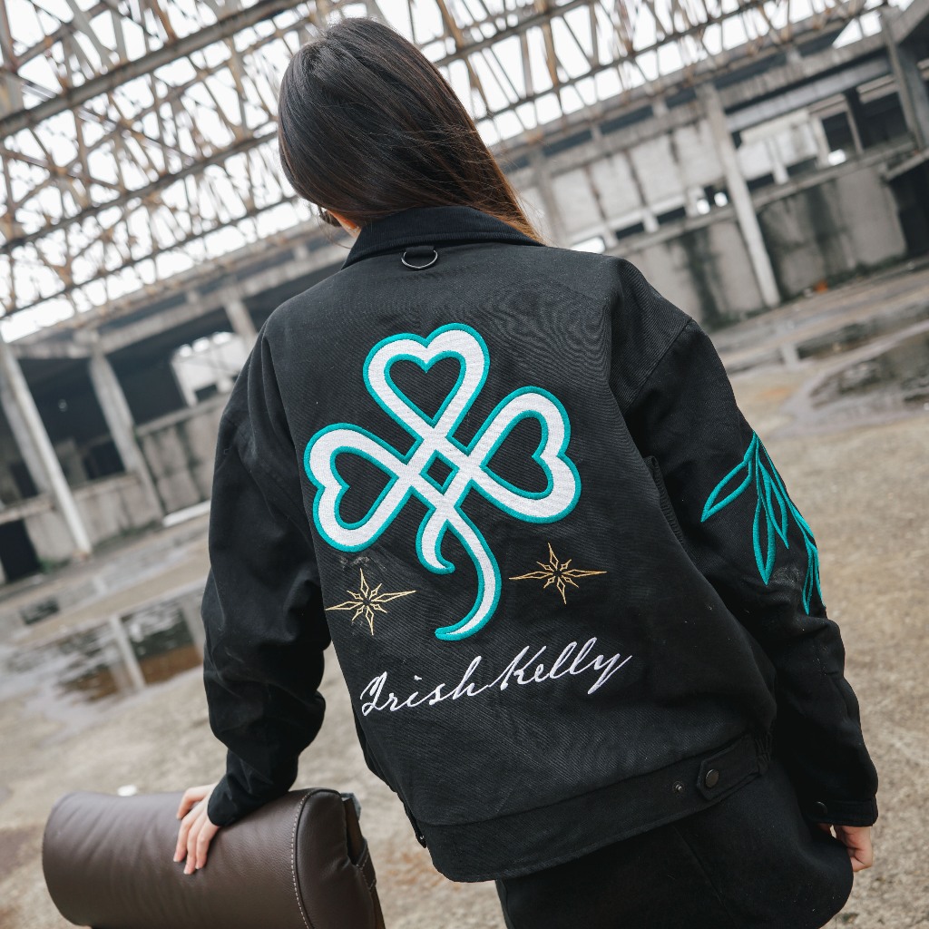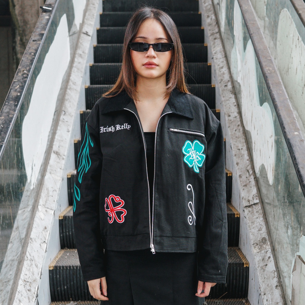 Irishkelly Workjacket Clover-Black Boxy Style Hitam