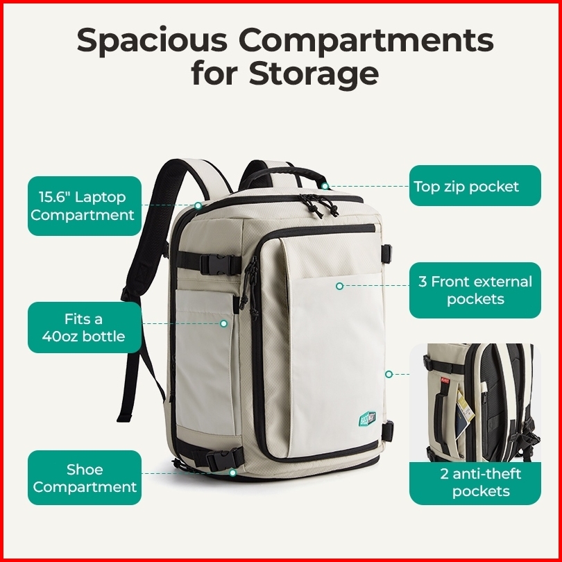 Bagsmart Travel Backpack Tas Ransel 38l15.6inch Anti Air Carry On Daypack Travel Duffel Bag Shoe Bag
