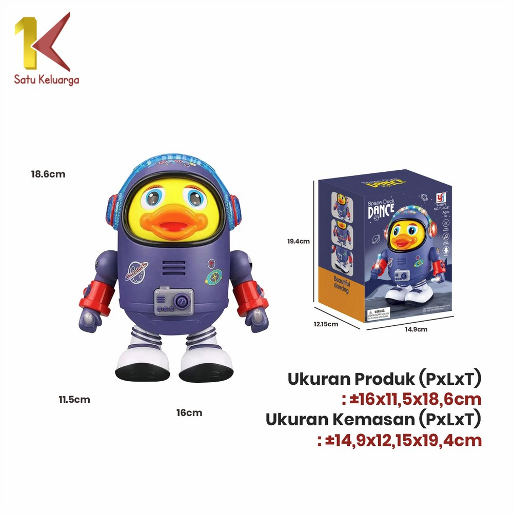 Satu Keluarga Mainan Anak Bebek Astronot Joget M311 Space Duck Dance Kids Robot Menari Ada Lampu + Musik / Mainan Bebek