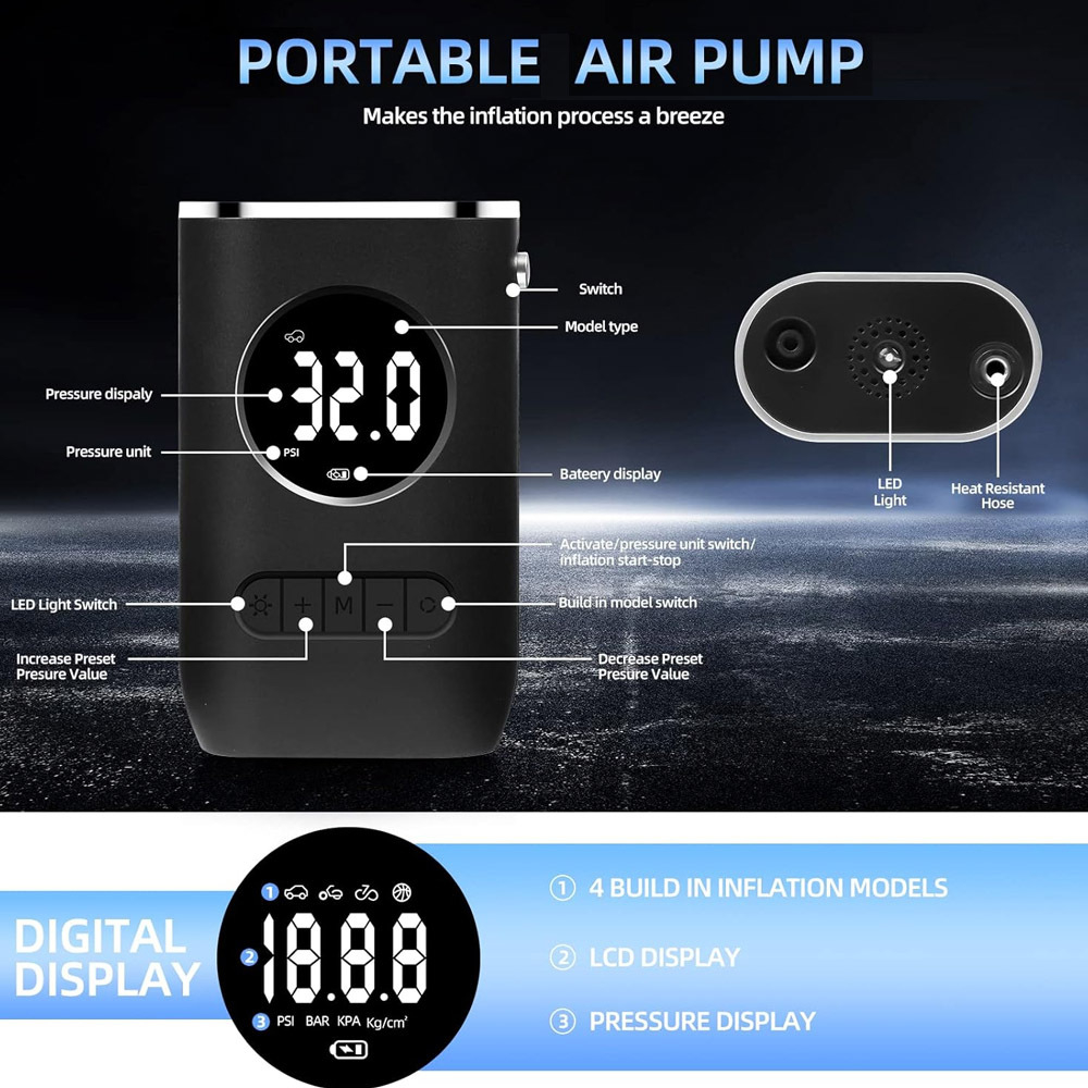 Air Pump Inflator Electric Pompa Ban Mobil Sepeda Elektrik Pompa Angin CZK3668 - Portable USB TYPE C Pompa Ban Mobil dan
