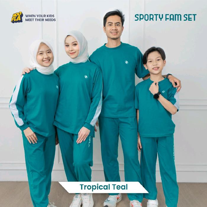Set Baju Olahraga Anak Dan Dewasa Sporty Fam Set Tropical Teal Baju Olahraga Sarimbit Hoofla Setelan Celana Outdoor - An