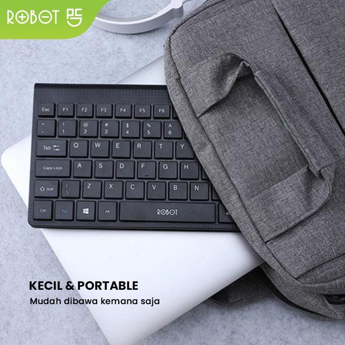 Robot Portable Mini Wired Keyboard Kabel Computer Rk10 Ultra Thin - Garansi Resmi 1 Tahun Bisa - 1 Colour, Standa