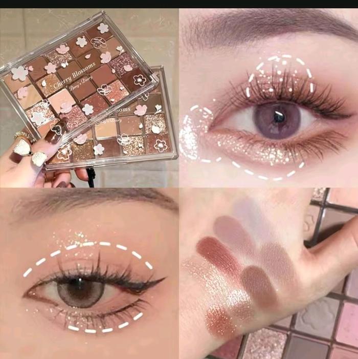 Paket Hemat 6 In 1 Eye Set Makeup Eyeshadow Cherry Blossoms 20 Color Brush Makeup Multifungsi - 01