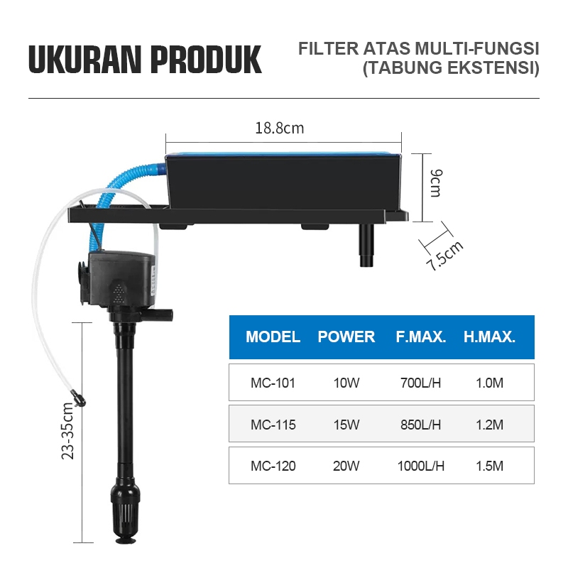 Filter Pompa Komplit Top Filter Box Aquarium 3 In 1 AKUARIUM TOP FILTER (BOX LEBIH BESAR)