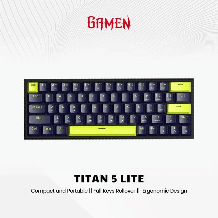 Gamen Titan 5 Lite Keyboard Kabel Gaming Computer Mechanical 60 PERSEN Layout Unpluggable Original - Garansi 1 Tahun - Blue+
