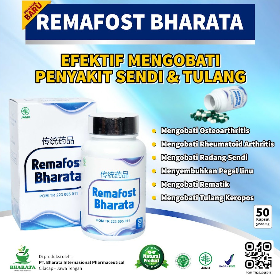 Remafost Bharata Obat Rematik Syaraf Kejepit Asam Urat Paling Ampuh Kemasan 500 gram 50 Kapsul BPOM