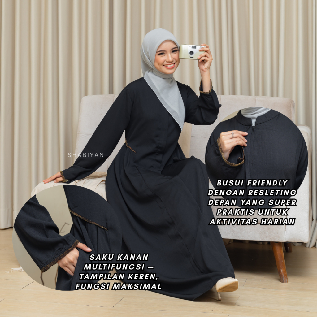 SHABIYAN 449 Gamis Hitam Polos Abaya Premium | Esra