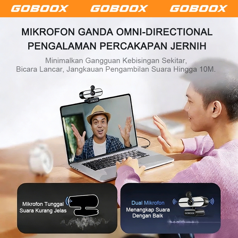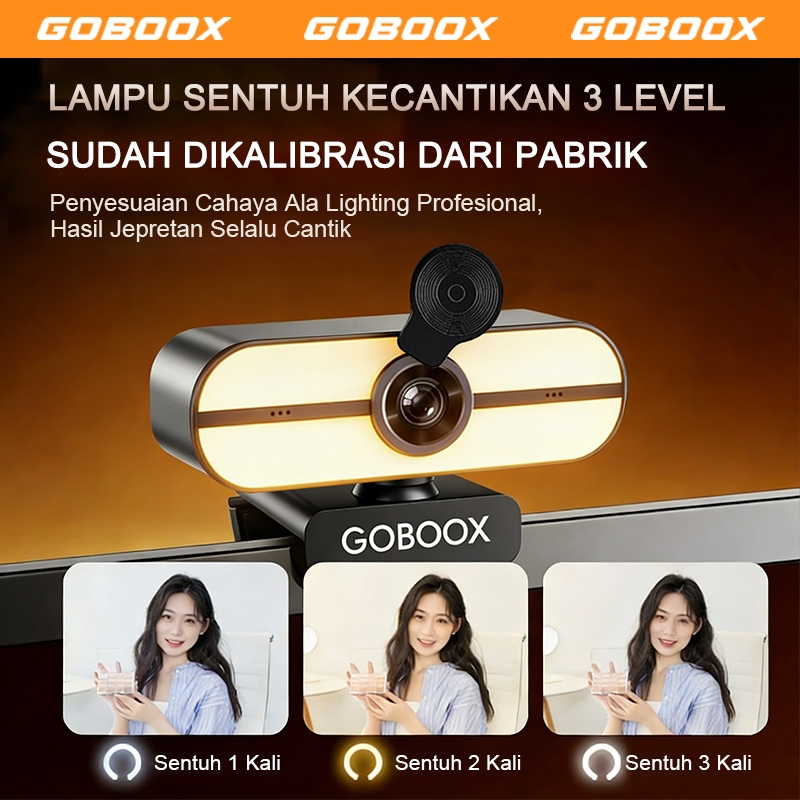 GOBOOX Webcam Laptop PC 4K 1080P Full HD Penutup Privasi Bawaan & Lampu Sentuh Kecantikan USB Kamera Laptop Fokus Otomat