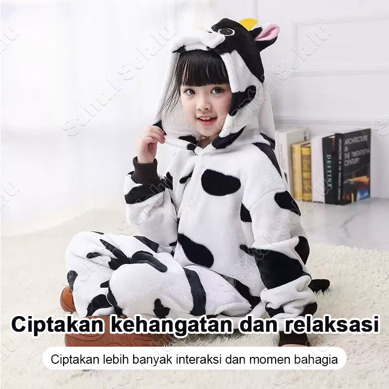 Kostum Onesie Kigurumi Kartun Anak Anak Dewasa: Dino Unicorn.Cow Stitch Piyama Cosplay Bahan Lembut