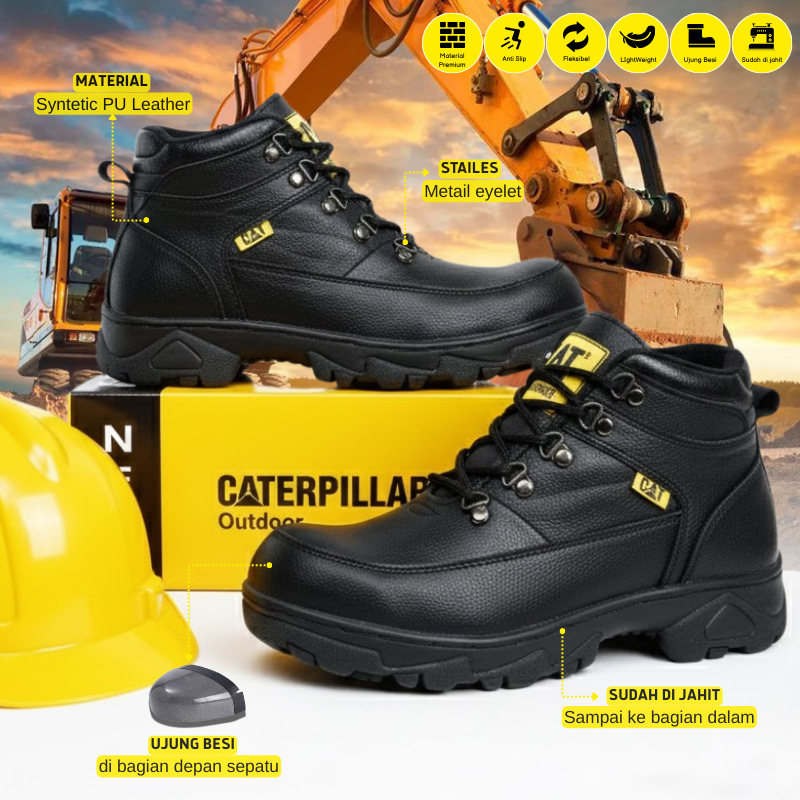 Sepatu Safety Pria Caterpillar Sepatu Boots Bikers Ujung Besi Kerja Proyek Lapangan Sefty Outdoor Touring Tracking Lapan