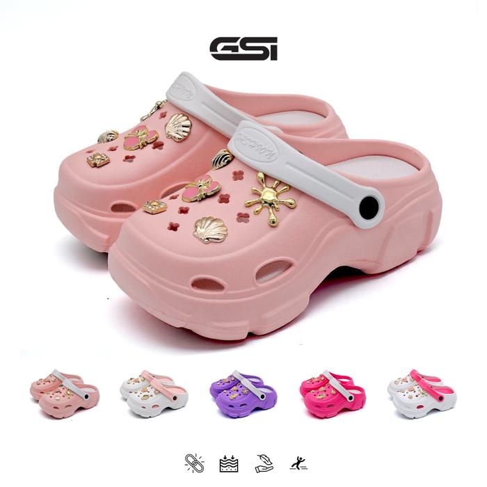 【Gsi Shoes】Sandal Anak Perempuan Sendal Selop Baim Karakter Fashion Bahan Karet Eva Lembut Empuk Dan Ringan - White Fuch