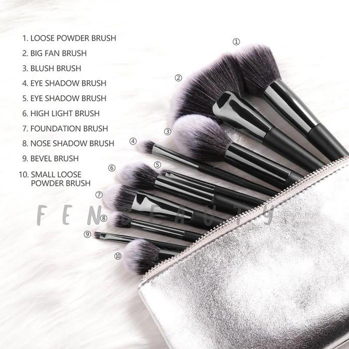 Fa70 Fcl Brush Set 6Pcs & 10Pcs Professional Make Up Tools Original Black slver Kuas - Fa#70 A-Brush 6Pcs
