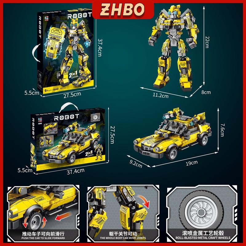 ZHBO Robot Blok Robot Mobil 2in1 Susun Set Hadiah Mainan Pendidikan Untuk Mainan Edukasi Anak